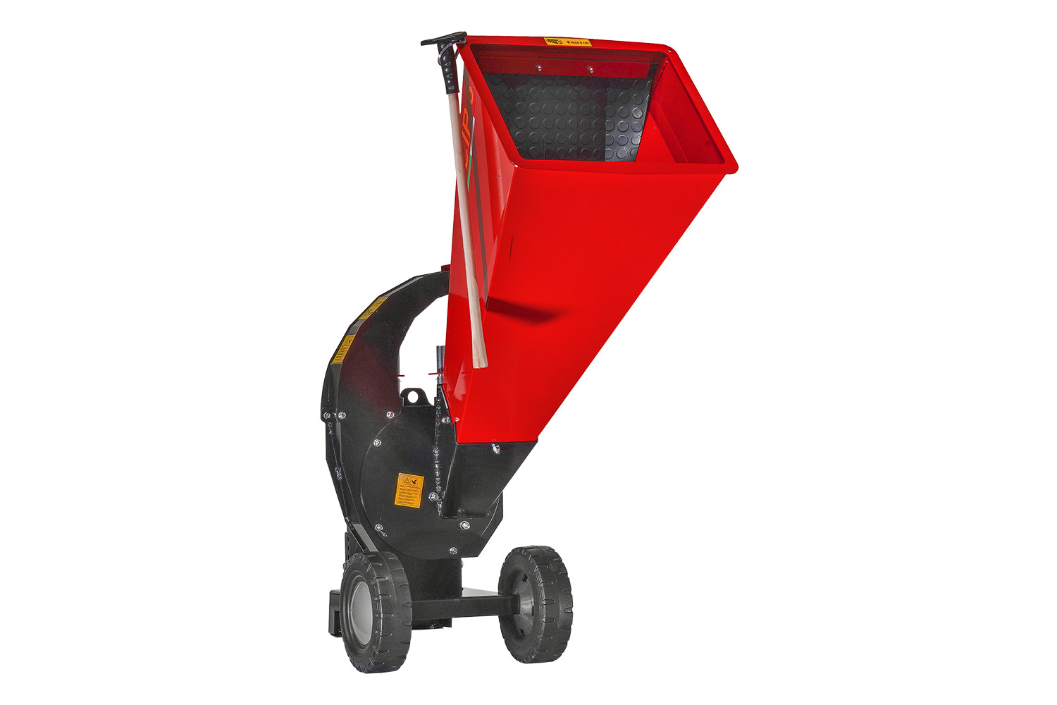 Zahradní drtič s velkou násypkou včetně funkce Safety STOP. Vybaven 6 nebo 8 noži, je schopen zpracovat dřevní hmotu do průměru 6 resp. 8 cm.