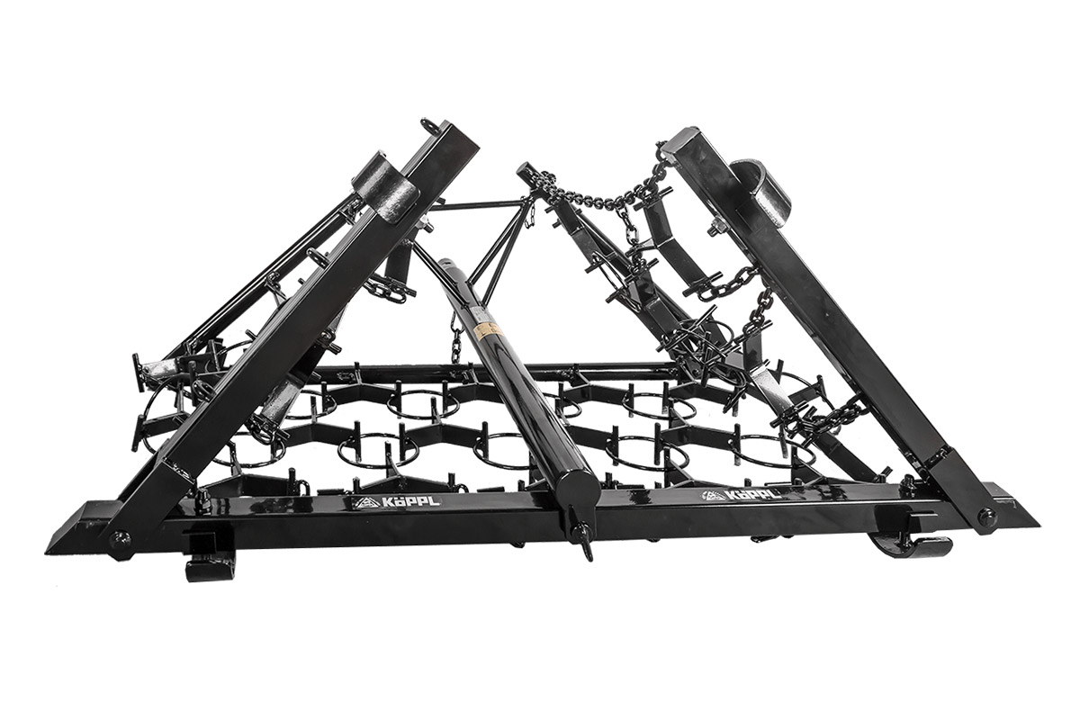 Čelně nesené brány pro odstraňování mechu, srovnávání krtinců nebo rovnoměrné rozprostření hnoje, kravského hnoje nebo kejdy.