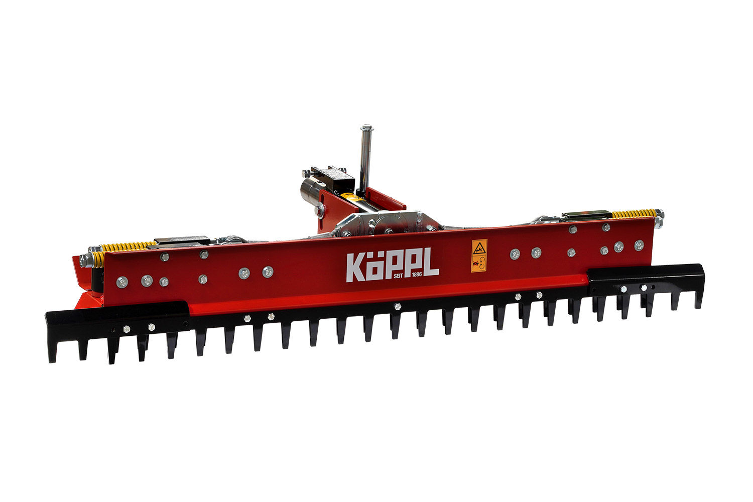 Dvojitý pohon shrnovacích bran s kuličkovými ložisky a pružinovými prvky. Ocelová trubková vodicí ramena na speciálních, odolných a bezúdržbových kuželových silentblocích pro nivelaci s nízkými vibracemi a ideálními výsledky.