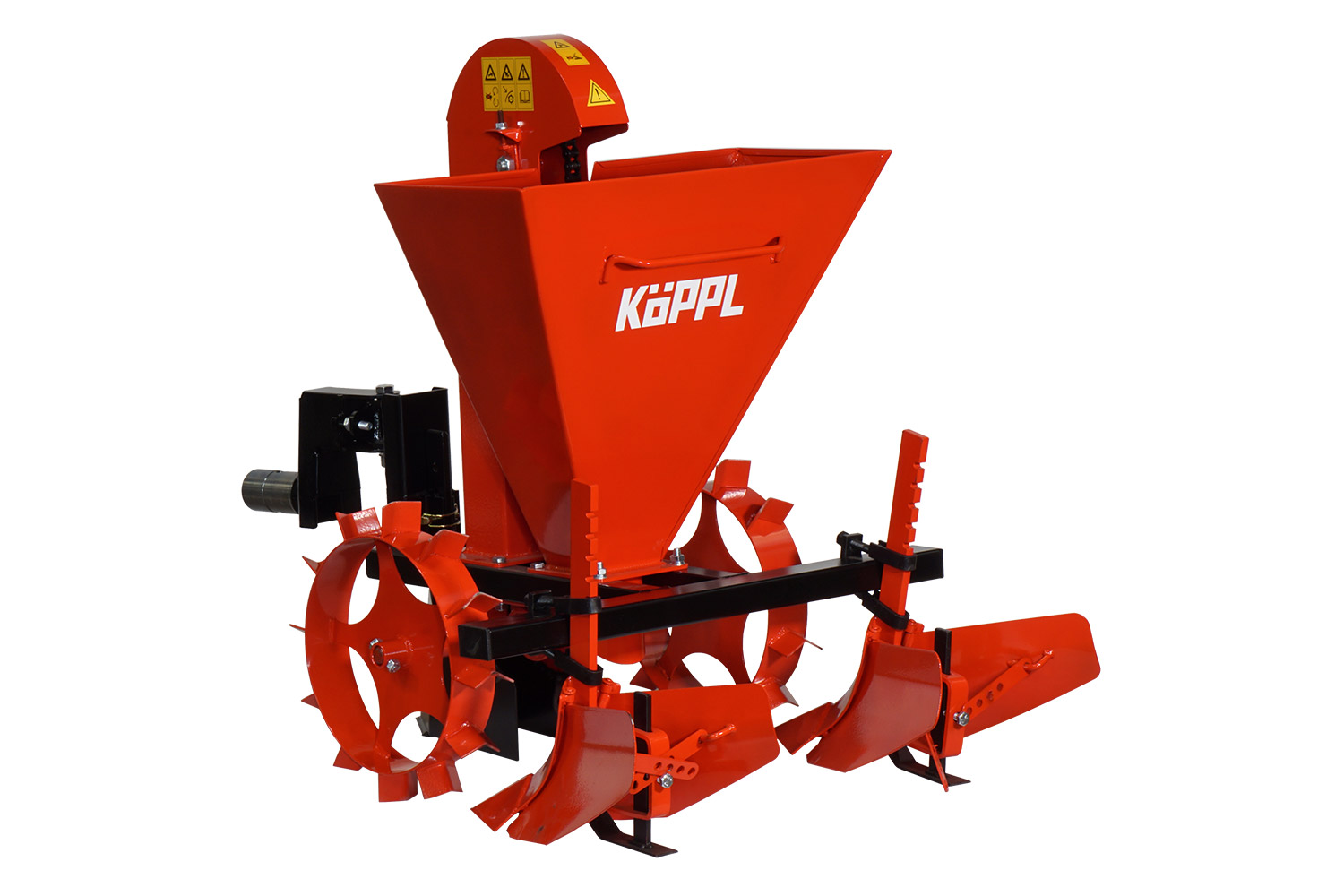 Poloautomatický dvouřadý sazeč brambor. Robustně poháněný, výškově nastavitelná radlička pro setí. Určený pro zadní montáž.